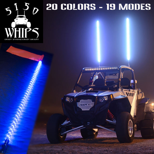 5150 Whips was started by life long off-roaders to create the strongest, brightest, most versatile, and easiest to mount multicolored lighted LED Whips in the industry. After being tired of replacing the traditional one color plastic straw whips once a season, 5150 whips was born to outlast and outshine the competition.