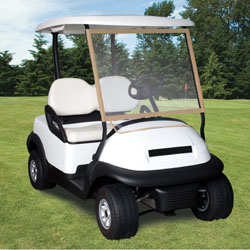 Classic's Portable Golf Car Windshield stores in a golf bag and installs in seconds to provide a shield against wind and rain. Features: Fits in seconds, without tools, to most popular golf cars using rip-and-grip straps Clear vinyl rolls up for easy storage in a golf bag Two year warranty Fits Color Item No. Most Golf Cars with Roofs Sand/Clear CAI-40-001-012401-00