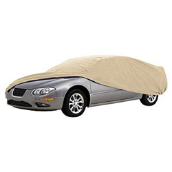 Coverite Softbond Car Cover features a new baby soft, non-abrasive, breathable, 3 layer system designed to give your vehicle maximum protection. The top layer consists of soft, durable fabric. The breathable middle layer allows water vapor to escape, yet prevents liquid from penetrating. The bottom layer is baby soft to protect your cars paint. The UV stabilizer gives lasting protection against the suns rays. Heavy duty elastic hems at front & rear provides a secure fit. Ultrasonic welding seals the seams tight. Fabric is naturally resistant to rot and mildew.