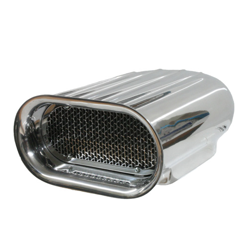 Give your single four barrel carburetor that awesome ram air scoop look with this polished ran air scoop. This highly polished aluminum fined air intake scoop features a hidden air filter located inside the scoop. This allows you to have ram air scoop look and still be able to run and an air filter on your motor. This model is set up for a single four barrel carburetor with a standard 5-1/8" air filter neck. Fits all four barrel Holleys, Edelbrocks and other carburetors with a 5-1/8" neck.