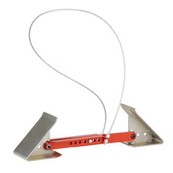 Fastway One Step Trailer Wheel Chock Annoyed at having to kneel down and ratchet your wheel chocks into or out of place? Tired of kicking a chunk of wood out from under your tire when you're ready to go? The new Fastway® ONEstep chock eliminates all that trouble! The ONEstep chock is the fastest and easiest tandem axle wheel chock available. To place the chock, simply slide it into place and step down. No bending or kneeling required! When you're ready to go, just pull up on the cable handle, and the ONEstep chock pulls right out! The chock also adds security to your trailer. A pad lock (not included) can be put in the remaining sets of alignment holes to sercure your chock and your trailer. Zinc plated wedges and durable powder coat finish keep the ONEstep chock looking great for years. Center pin design quickly and easily adjusts the chock from 16" to 24" to fit most tandem axle trailers. Great for travel trailers, 5th wheels, boats, cargo and horse trailers. Also available in an XL Model for trailers with extended axle spacing like the Keystone Hornet, Keystone Passport Ultra-Lite, and Heartland North Trail. See out our items for the XL model up to 30".