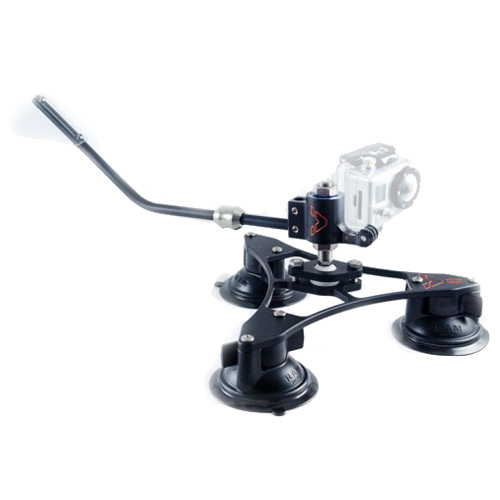 The GoMT BODY The GoMT body itself can be removed easily from the tri-base and can be attached to the vehicle by threading the mount to various standard mounting assemblies. Shaft threads: Internal 1/4-20, external 1/2-20. The optional portable Tri-base is included in this kit. The Suction Cup 12" Tri-Base The Portable Tri-base is the perfect solution for those in need of a quick-release option for their VectorMount GO. The Tri-base comes equipped with high-quality Ram Mount suction cups that attach to smooth surfaces giving you the flexibility to grab your VectorMount and go. The Tri-base can accommodate the VectorMount for swivel shots or it can be used to mount a camera directly to it for static videography. The Tri-base also features a ball leveling system allowing it to be placed on the slope of a vehicle's hood without compromising the VectorMount's unique swivel capabilities. SPECS: